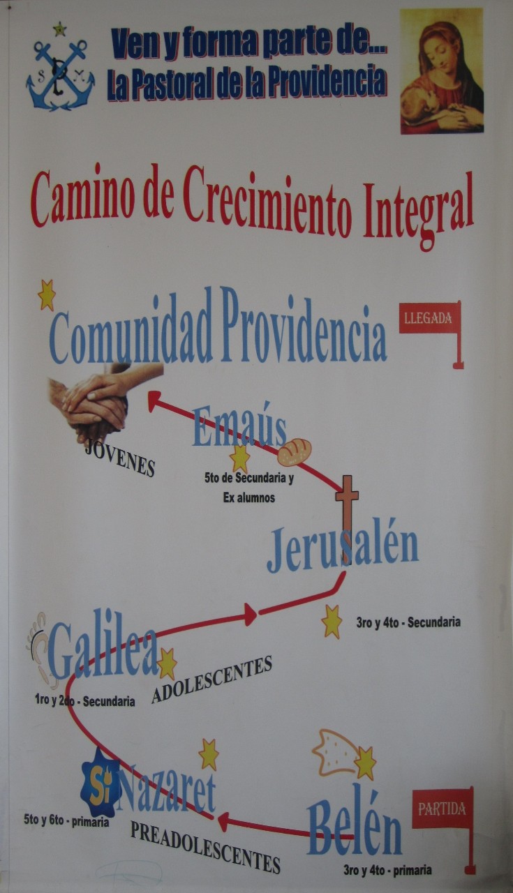 Además nos sentimos con la necesidad de formar a la persona de manera integral, para lo que hemos implementado y desarrollado un CAMINO DE CRECIMIENTO INTEGRAL a través de la Pastoral de la Providencia. Este camino tiene las siguientes etapas:
